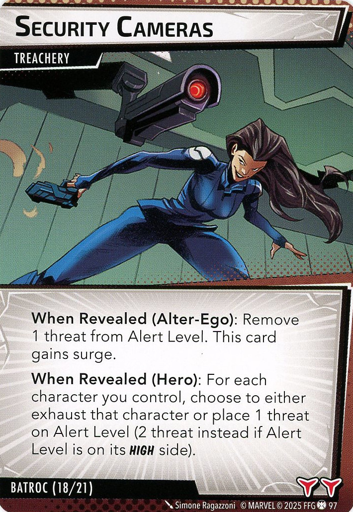 Cuando se muestre esta carta (Héroe): por cada personaje que controles, elige entre agotar a ese personaje o bien colocar 1 de Amenaza sobre Nivel de alerta (2 de Amenaza si Nivel de alerta tiene boca arriba la cara de Alto).